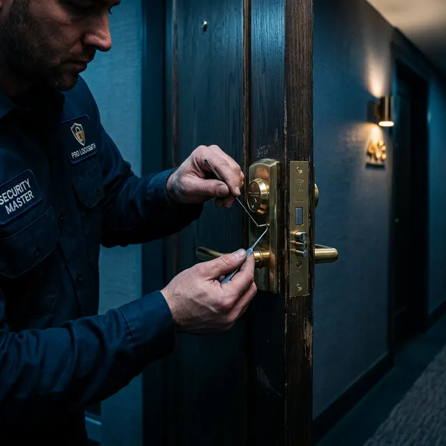 Artisan serrurier professionnel intervenant sur une serrure haute sécurité